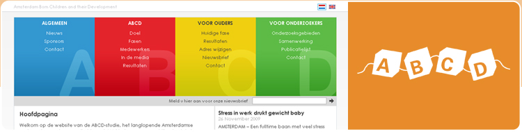 De ABCD-studie is een langdurig onderzoek naar de samenhang tussen zwangerschap en de levensjaren van de kinderen na de geboorte. Om de ouders, onderzoekers en geïnteresseerden beter van dienst te kunnen zijn, was de website toe aan een re-design. Met succes, mag ik wel zeggen.